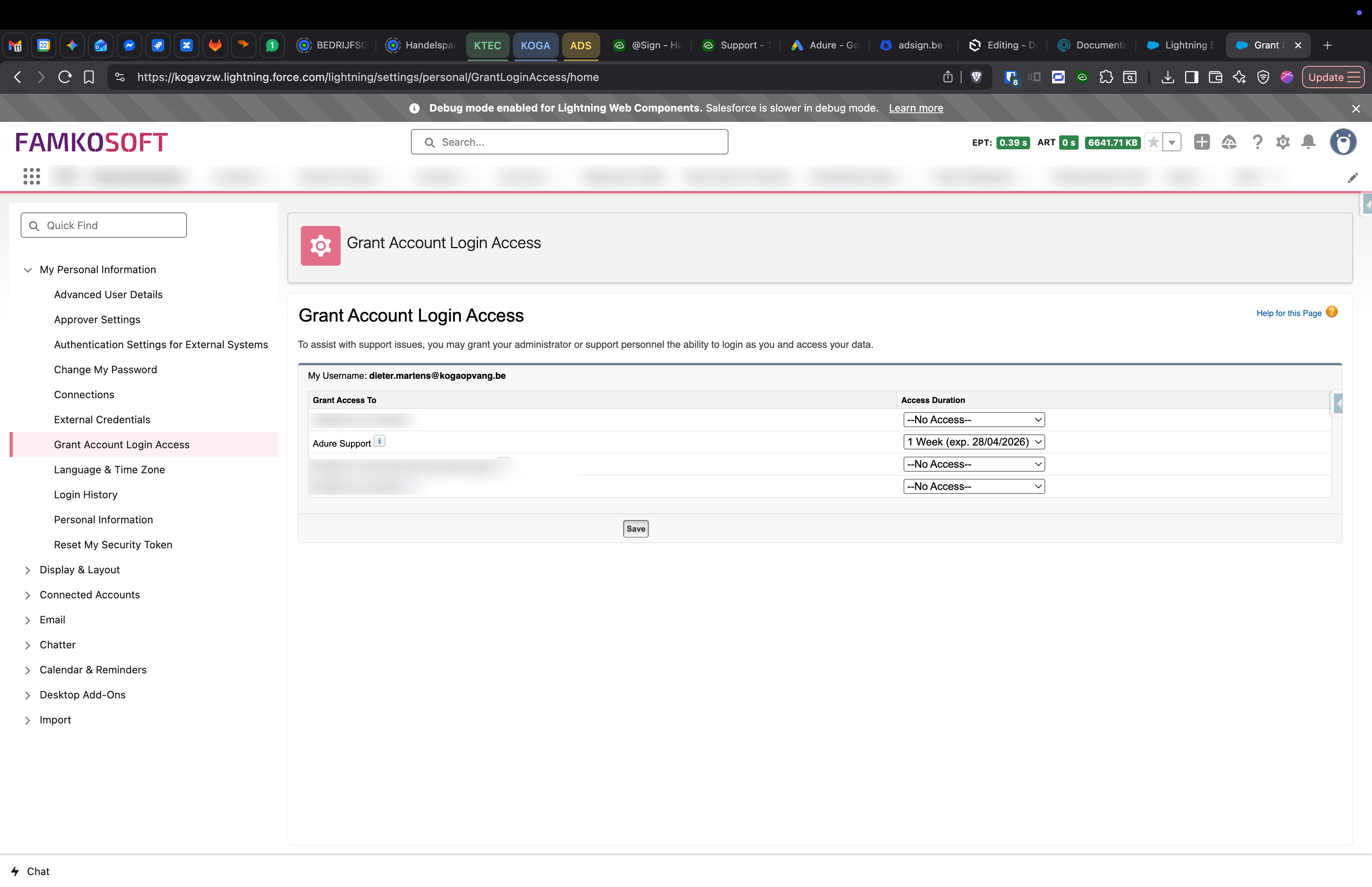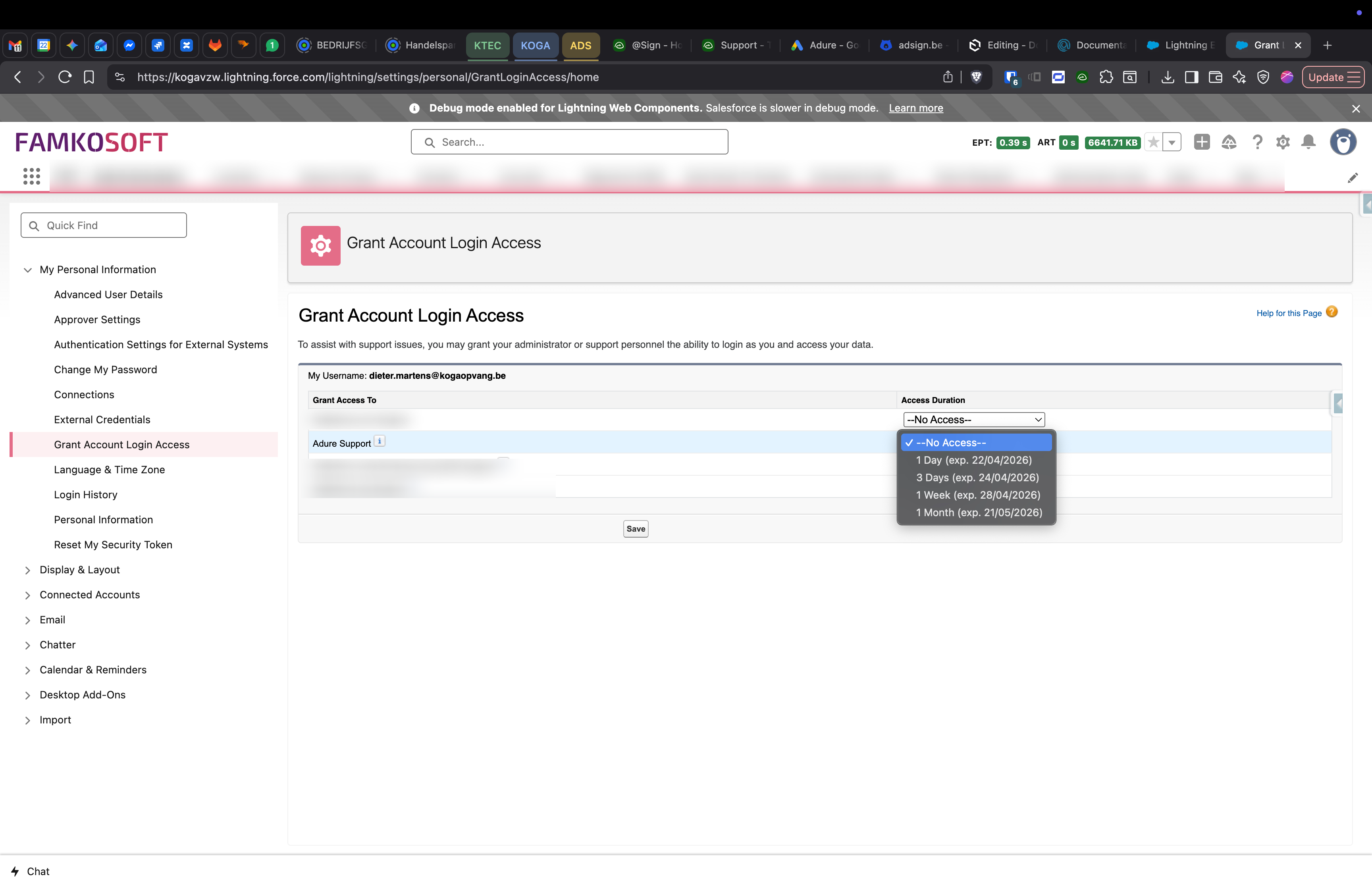 Need help from our team? Grant Adure temporary login access to your Salesforce org so we can investigate and resolve your issue directly — no password sharing required.