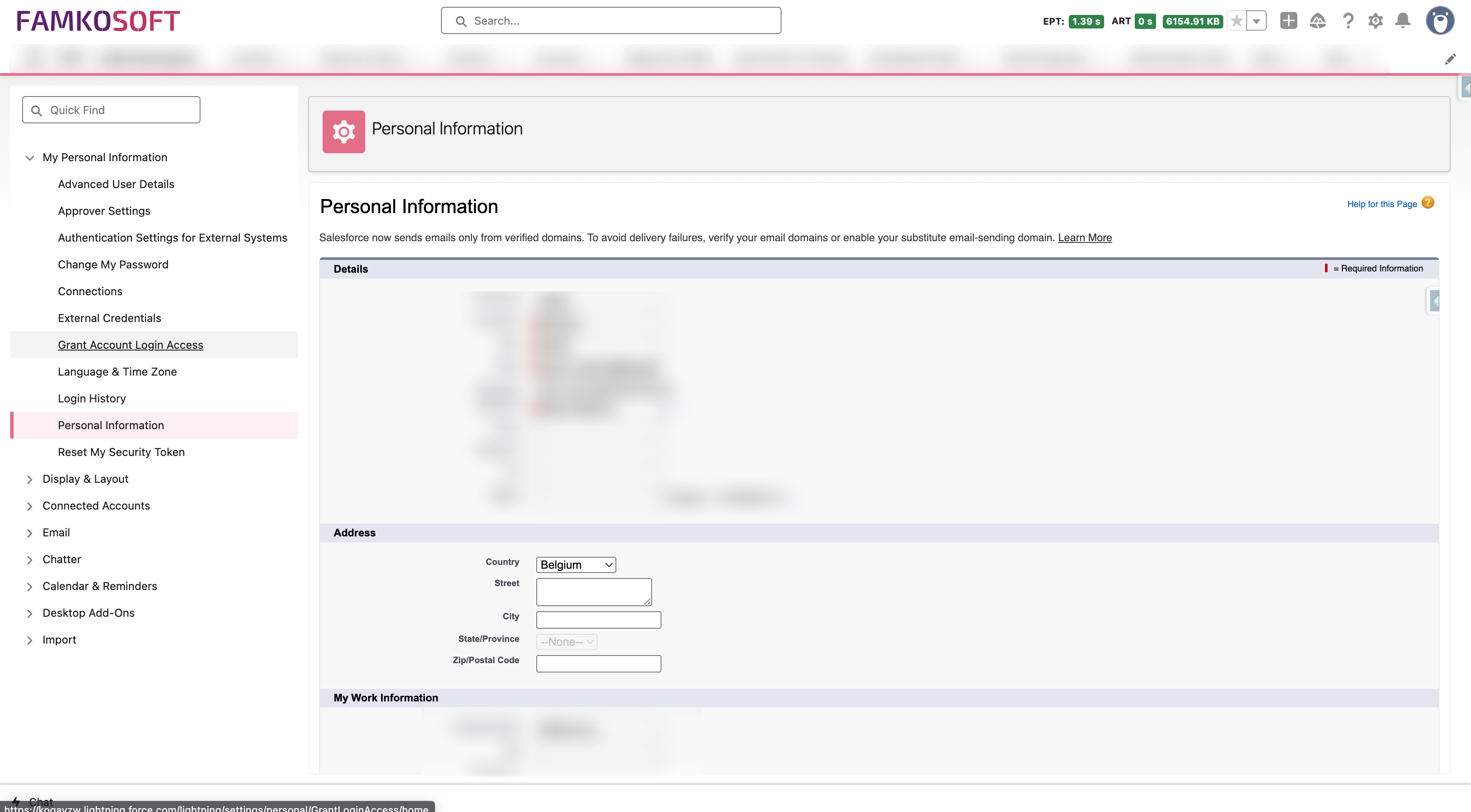 In the Settings menu, use the Quick Find search box and type 'Grant Account Login Access', then click it in the results.